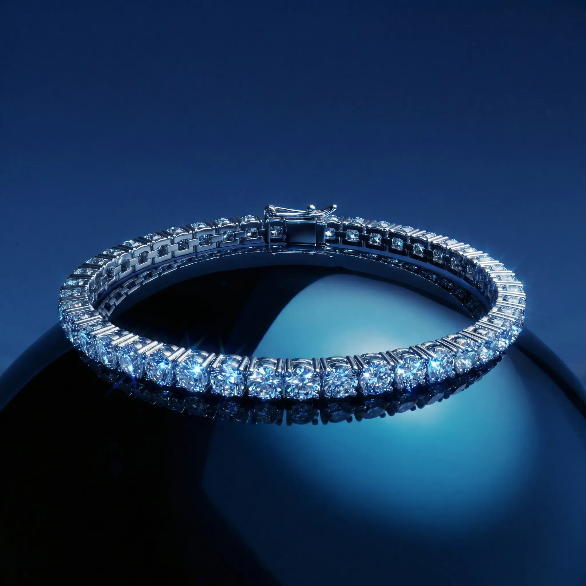 Experience brilliant luxury with The Aurelian Chain. A Full-Moissanite Bracelet, featuring dazzling 3mm D color VVS1 stones set in 18K white gold-plated sterling silver. This certified, classic piece is engineered to shine brighter than traditional diamonds and comes with a complimentary GRA certificate.